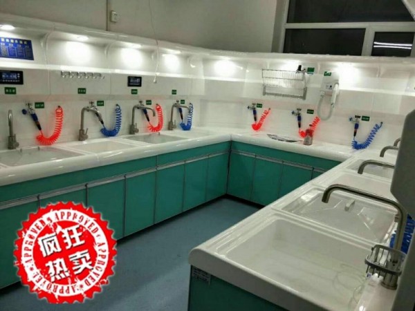 1、臺面和清洗槽采用防泛水設計,濺到臺面的液體會全部流入下水道。2、臺面前端采用大圓弧造型設計,為內鏡洗消人員提供腰腹部的