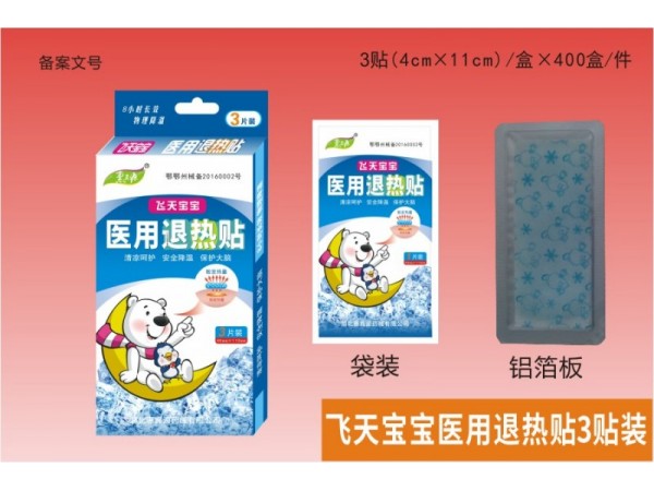 【批準文號】 鄂(鄂州)食藥監械(準)字2013第1580006號。【規格包裝】 4cm*11cm*3貼*400盒/件。【適用人群】 兒童適用。【生產企業】 湖北惠真源藥械有限公司。【適用范圍】該產品具有冷敷理療、物理降溫的作用,適用于感冒等各種原因引起的發燒,發熱,以及閉合性急性扭挫傷的降溫冷敷。【用法和用量】 依據發熱部位,適當選擇額頭、太陽穴、大椎穴以及發熱關節和扭傷部位進行貼試,每次選擇1-2個部位,一個部位貼1貼即可。主要優勢:1、物理降溫,安全有效。2、8小時持續降溫。3、適用與感冒及其他原因引起的發熱以及發燒引起的不適。4、具有輔助治療及應急物理降溫的作用。5、可緩解發熱引起的頭痛,鼻塞等癥狀。6、降低大腦局部溫度,減少發熱對大腦細胞的損害和高溫驚厥有一定作用。7、快速物理降溫及候診時應急處理。