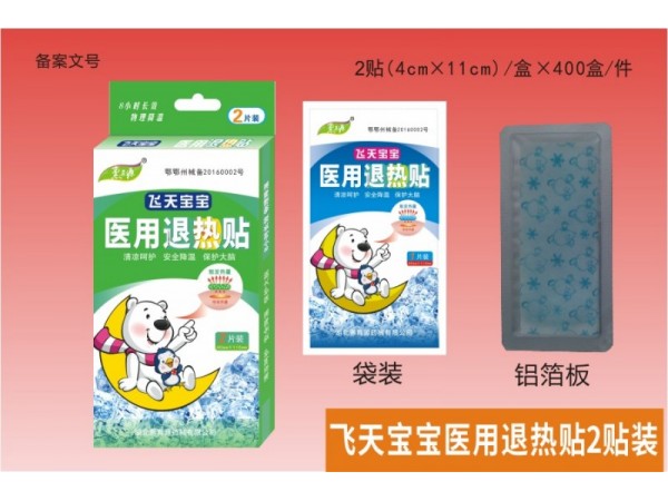 【批準文號】 鄂(鄂州)食藥監械(準)字2013第1580006號。【規格包裝】 4cm*11cm*2貼*400盒/件。【適用人群】 兒童適用。【生產企業】 湖北惠真源藥械有限公司。【適用范圍】該產品具有冷敷理療、物理降溫的作用,適用于感冒等各種原因引起的發燒,發熱,以及閉合性急性扭挫傷的降溫冷敷。【用法和用量】 依據發熱部位,適當選擇額頭、太陽穴、大椎穴以及發熱關節和扭傷部位進行貼試,每次選擇1-2個部位,一個部位貼1貼即可。主要優勢:1、物理降溫,安全有效。2、8小時持續降溫。3、適用與感冒及其他原因引起的發熱以及發燒引起的不適。4、具有輔助治療及應急物理降溫的作用。5、可緩解發熱引起的頭痛,鼻塞等癥狀。6、降低大腦局部溫度,減少發熱對大腦細胞的損害和高溫驚厥有一定作用。7、快速物理降溫及候診時應急處理。