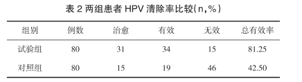 本研究顯示,治療后6個月,試驗組總有效率顯著高于對照組,試驗組脫落細胞學檢查轉陰率顯著優于對照組。