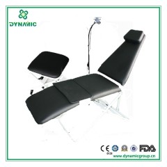 該產品由輕便椅改型設計的新一代全折疊椅,照明由原鹵素燈改為LED聚光照明,根據現代人體工程,椅身增長50mm,增寬40mm,椅身右側增加痰盂支架和盂盆,半折疊改為全折疊(不用螺絲刀和扳手),左右扶手改為固定式(堅、穩),整機重量減輕2kg,該產品適用于牙科、美容院、打吊針、納涼等。