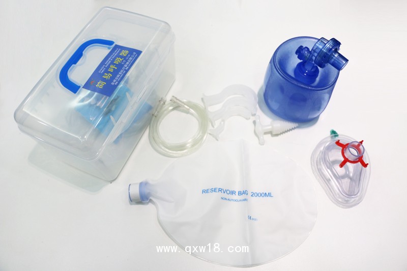 簡易呼吸器由彈性呼吸球、進氣閥活瓣、面罩、進呼吸閥閥體、面罩接頭、儲氣袋、安全閥、氧氣連接管、口咽通氣道、開口器、呼吸閥活瓣組成。彈性呼吸球、進氣閥活瓣、面罩由硅橡膠制成,進呼吸閥閥體、面罩接頭、儲氣袋、安全閥、氧氣連接管、口咽通氣道、開口器由聚碳脂、PVC聚氯乙烯制成。呼吸閥活瓣由甲基乙烯硅橡膠制成。產品以非滅菌方式提供。