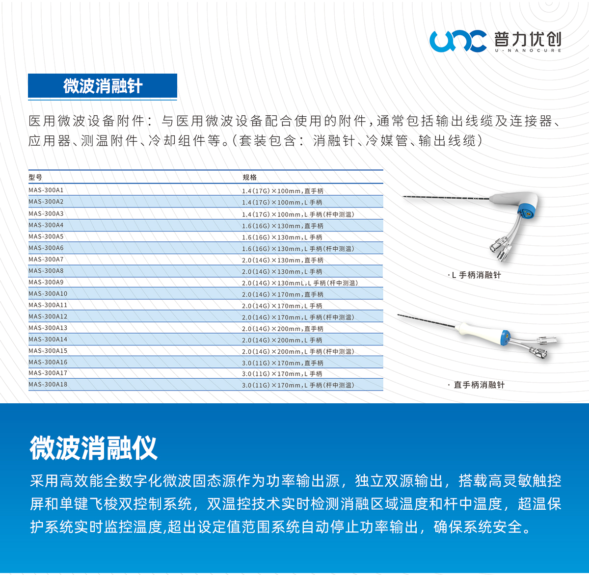 【產品類別】其他【批準文號】國械注準20233010033【招商區域】全國【產品賣點】獨立雙源輸出 落地式一體機 高亮智能顯示 雙影像定位 雙控制系統 雙溫控技術【產品說明】一次性使用微波消融針醫用微波設備附件:與醫用微波設備配合使用的附件,通常包括輸出線纜及連接器、應用器、測溫附件、冷卻組件
