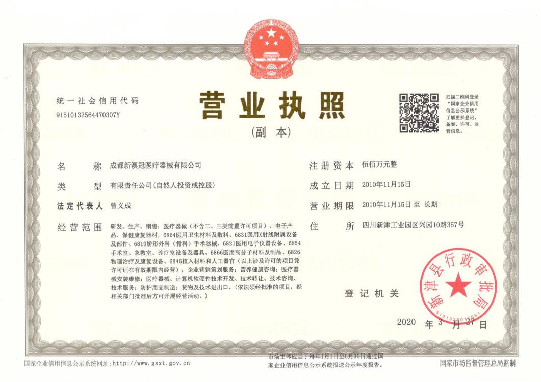 【批準文號】川械注準20172660002