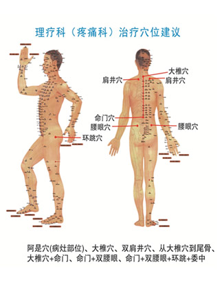 參照穴位:大椎穴、曲池穴、肩俞穴(內、外俞)雙肩井穴、風市穴、委中穴、足三里。
