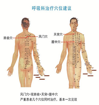 通過藥物對穴位刺激,可以有效的治療咳喘癥氣管、支氣管炎、肺炎等;能夠暢肺氣、除痰濁、改善癥狀,且無任何毒副作用。